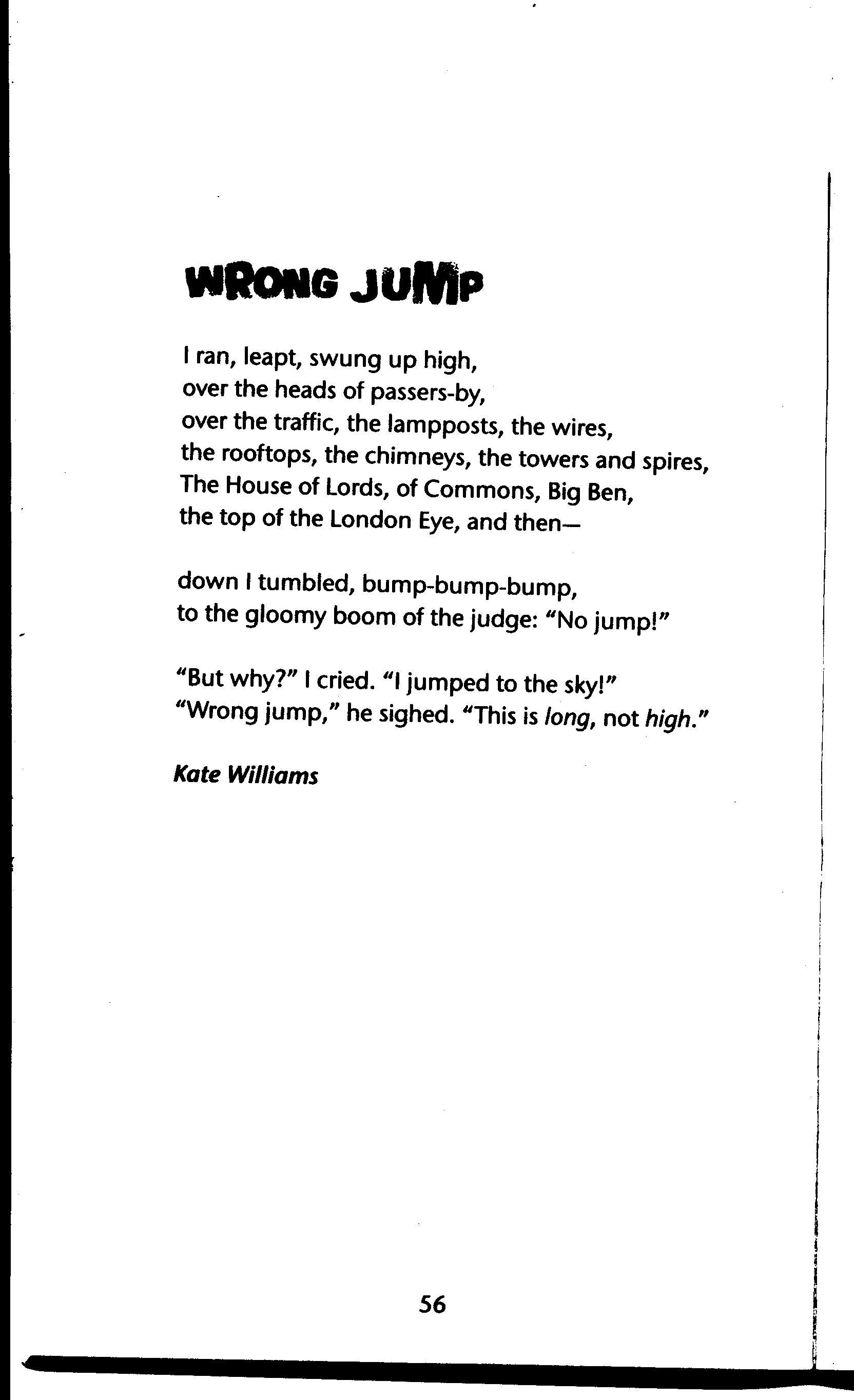 Anyway, those ‘no jumps’ inspired this sad little poem, published in When Granny Won Olympic Gold, A & C Black, 2012, anthologist: Graham Denton. (Please click to enlarge.)