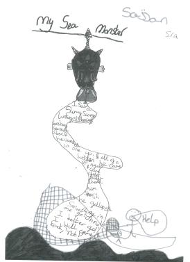 Here’s a poem of mine about a sea monster, which I might include with the mythical theme, and below it, a totally different one by one of my young writers. Mine is published by The School Magazine, with this wonderful illustration by Matt Ottley: