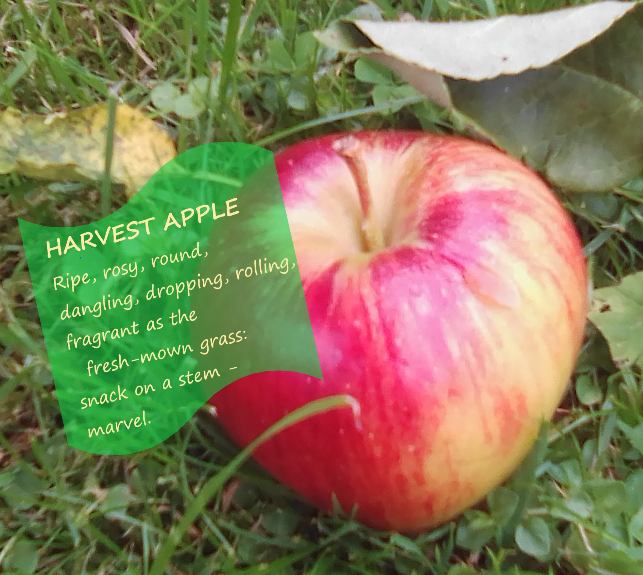Here’s an example I made up this morning, sitting by my apple tree in the late summer sun:
