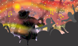 This is a fun, jazzy, relaxing rhyme and beat, in which a busker draws an ever-growing audience in the glowing summer sunset, and everyone ends up dancing, clapping and humming along – all in a tiny poem!