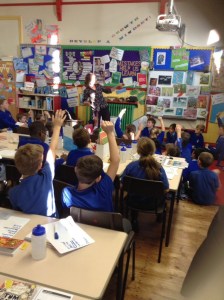 End your chat on a high note or a funny or exciting one, as appropriate, as you introduce your planned poem-writing activity. Offer a frame for this, with a starter line, try a few together, write up one on the board, stressing that it’s not for copying, and off they’ll go!