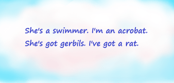 This little couplet is taken from ‘Different but the Same’ – a poem about friendship: a child’s list of all the things she and her friend differ on, but ending with the fact that, despite all their differences, they just love each other’s company, actually having so much in common!