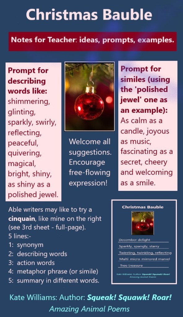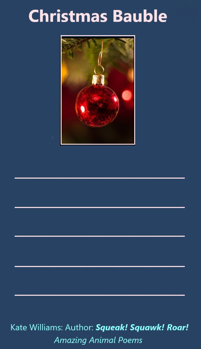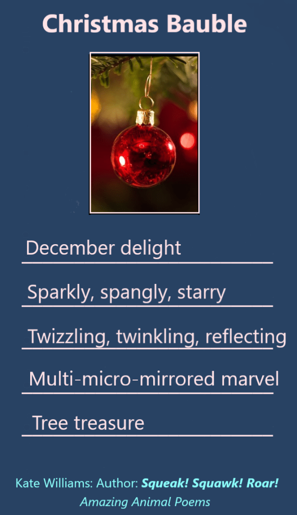 Perhaps your children (class or family) would like to write a 5-line poem about a shiny Christmas decoration too.