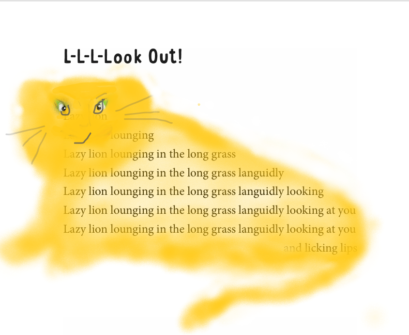 Alliteration is fabulous fun for clever kids to craft! Here’s a cool, creepy, cunning l–l-l-lion poem to get your class started: ‘L-L-L-Look Out!’