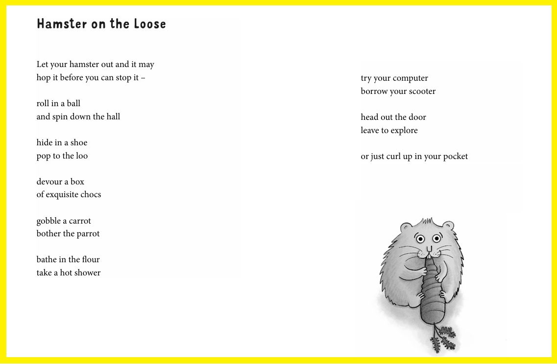 “These poems move quickly down the page like animals might, unleashing rhymes and rhythms everywhere.”